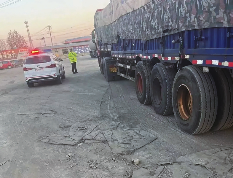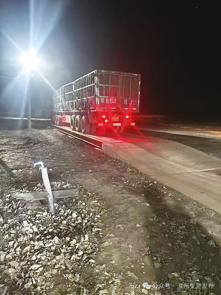 2024年12月27日01时08分,惠民大队四中队民警在辖区内巡逻执勤,民警对车牌号鲁MFE**3的重型半挂牵引车依法进行检查时,发现驾驶员有涉嫌驾驶机动车载物超过最大允许总质量100%的嫌疑。