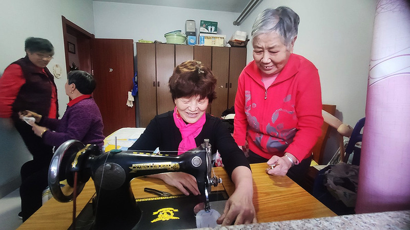 2021年7月,于志芹带头成立了市西街道康民社区一棉退休职工志愿队。那时,她就琢磨着如何为社区尽一份力。“小时候母亲给我讲过为部队做军鞋的事情,现在仍记忆犹新。我做了一辈子纺织工作,别的也不会,缝纫机可是8岁就会用了。”于志芹说,她把自己的想法和姐妹们一说,立刻获得了一致赞同。大家纷纷把家里积累下来不用的布料拿出来,消毒、画样、裁剪、锁边,分工合作,忙得不亦乐乎。
