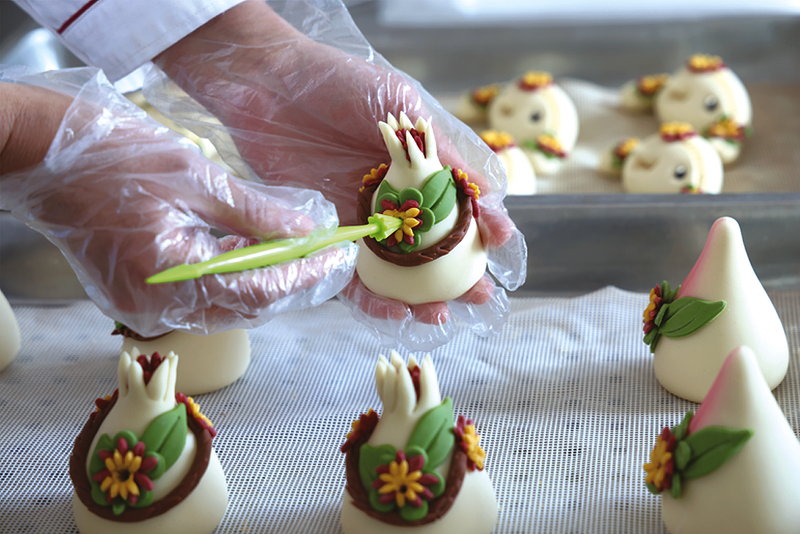 春节临近年味儿浓,邹平市韩店镇花馍制作坊的面点师傅用面粉、鸡蛋和果蔬汁等食材,制作花开富贵、福气满满、多子多福、年年有余等各种寓意的节庆花馍。这些花馍色彩鲜艳、品种多样、软糯香甜,线上线下深受市场青睐。