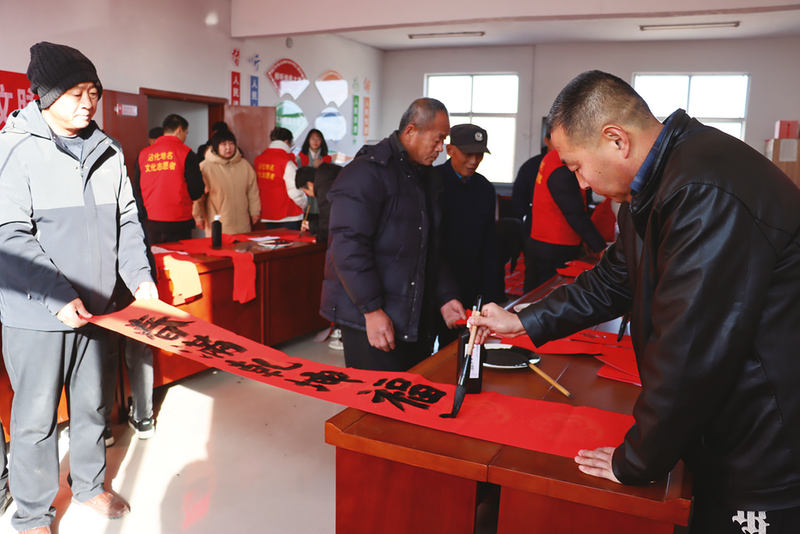 晚报沾化讯1月16日,沾化区第六届“典亮春联村”万福送万家创建活动走进黄升镇程井村,来自沾化区书法家协会的多位书法老师挥毫泼墨,将祝福书写成一份份“文化年货”,送到群众心坎上。他们把现场书写的200余副春联、“福”字赠送给闻讯赶来的村民。