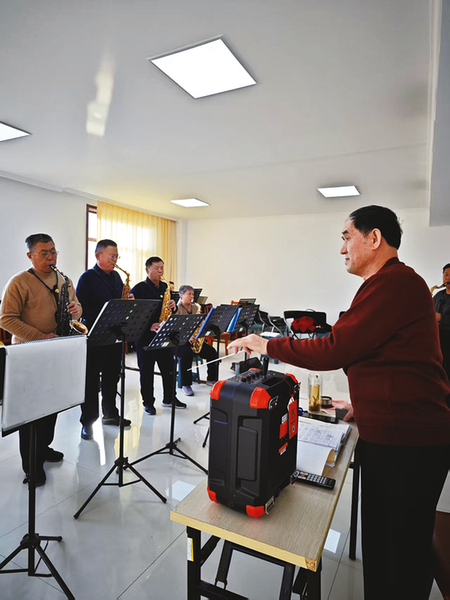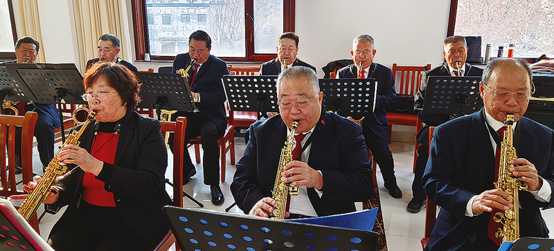 滨州市老年大学银光萨克斯乐团的许振吉,今年68岁,原是滨州职业学院有着40年教龄的音乐教师。2017年退休后,受聘到滨州市老年大学担任葫芦丝和萨克斯教师。在教学过程中,他感受到老同志们强烈的求知欲,也深知他们对专业指导的迫切需求。带着让老同志们老有所养、老有所为、老有所乐的愿望,2021年7月,许振吉接任了滨州市老年大学银光萨克斯乐团团长一职。