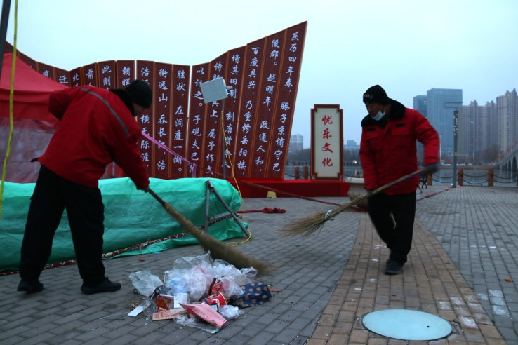 保洁队队长郭立泽介绍,除夕到正月十六,除常规保洁外,每天安排160余名环卫工人在天地桥、情人岛、蒲湖景区等10余个重点部位进行集中清扫,确保重点景区的干净整洁。