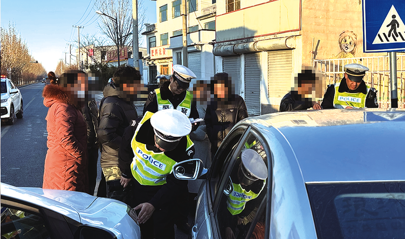 滨城区交警大队事故科民警尚明建与辅警高萌、陈通刚将杨柳雪镇吕家村发生的两车相撞事故现场处理结束,就马不停蹄来到位于市区黄河十路渤海八路的裕华苑小区。一对中年夫妇早已在此等候。