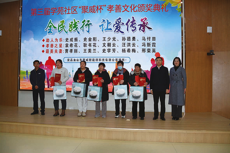 晚报阳信讯 近日,阳信县河流镇学苑社区举办第三届“聚威杯”孝善表彰会,表彰社区孝善之星、好媳妇、好婆婆、最美夫妻,为80岁以上老人发放新年“大礼包”。
