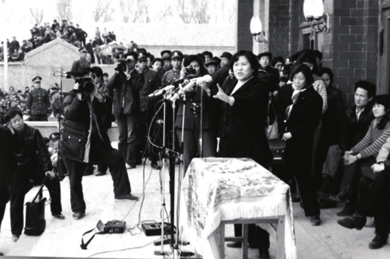 1987年,刘兰芳在胡集说书。王印权(刘兰芳丈夫)/摄