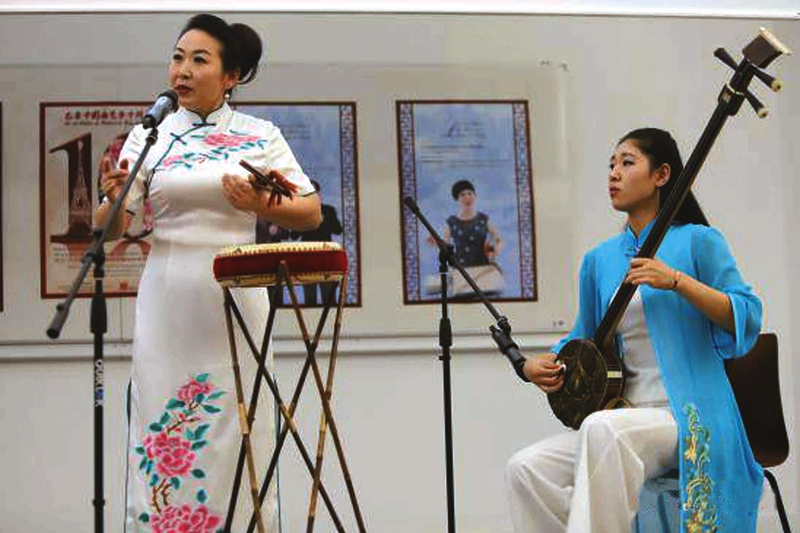 ▲2017年,苗士芹(左)参加巴黎中国曲艺节展演。(曲艺杂志社公众号)