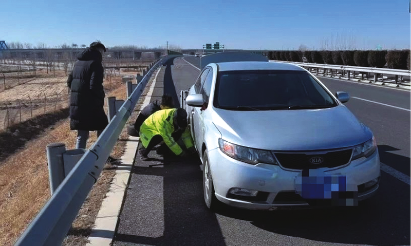 晚报讯 2月8日,市交通运输综合执法支队综合执法四大队执法人员巡查至东吕高速K114+500M处时,发现一辆银灰色小轿车停在应急车道上。车辆旁边站着的两个人在寒风中瑟瑟发抖,执法人员立即停车询问。经了解,该车在行驶途中突然爆胎导致车辆无法继续行驶,但司机和随行人员未曾更换过轮胎,焦急万分。了解情况后,执法人员一边安抚受困群众的情绪,一边帮助受困车辆做好安全防护措施,并利用随车携带的工具帮助驾驶员维修车辆。经过十几分钟的努力,故障车辆成功启动。车主对执法人员的及时救助表达了谢意:“太感谢你们了!我们真不知道该怎么办了,幸好,遇见了你们。”