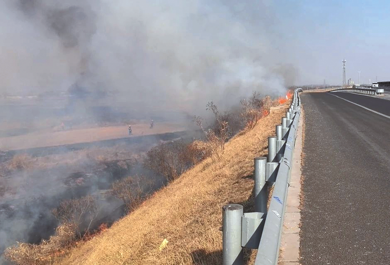 晚报讯 2月10日,市交通运输综合执法支队执法人员巡查至滨城北收费站时,发现路边护栏外浓烟弥漫,严重影响通行视线。