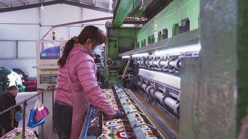 惠民县辛店镇通过打造乡村“共富工坊”,实现群众“家门口”就业。在辛店镇红一方地毯有限公司,春节刚过就开始忙碌起来。张春英是辛店镇高宅村的村民,在这里上班让她多了一份稳定收入。