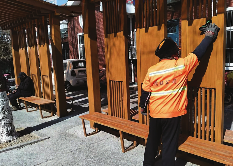 设施维护,暖心服务。对校园周边果皮箱、过街天桥、护栏、家长等候区等公共设施进行深度清洗擦拭,开展“地毯式”深度维护。强化学校周边公厕保洁及巡检力度,实时动态保洁作业,发现设备问题及时维修,保证公厕正常运行,为广大家长及师生提供优质如厕服务。