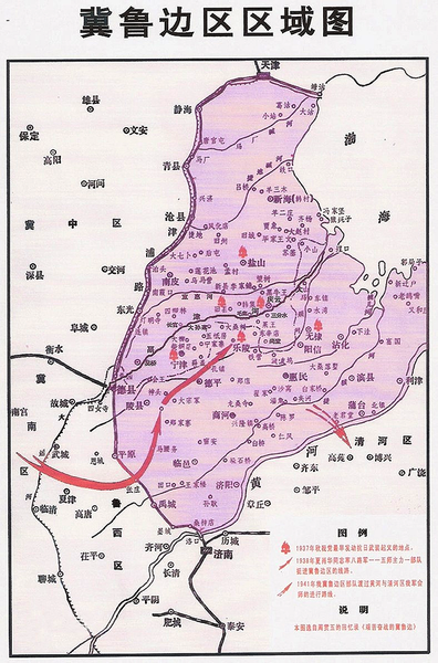 惠民、阳信、无棣、沾化、滨县及山东省北部的部分县与河北省津南地区的部分县,在抗日战争时期合并形成冀鲁边战略区,也被称为“津南、鲁北地区”,冀鲁边区东临渤海,西胁津浦,南屏黄河,北迫平津,面积约3万平方公里,人口约600万,是天津、济南两大重镇南北相夹的战略要地,历来为兵家必争之地。