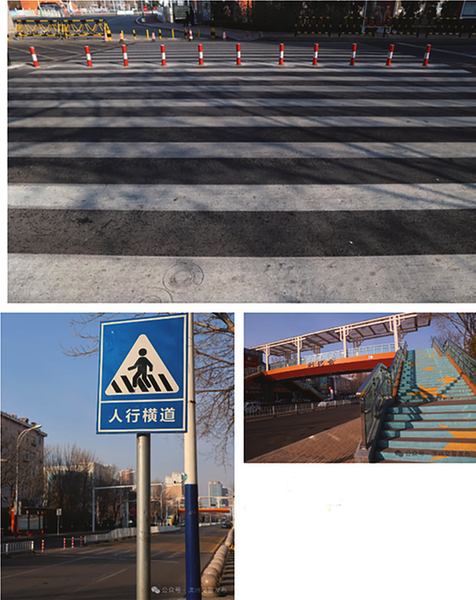 过街设施,包括人行横道(斑马线)、过街天桥、地下通道等,保障学生过街安全。