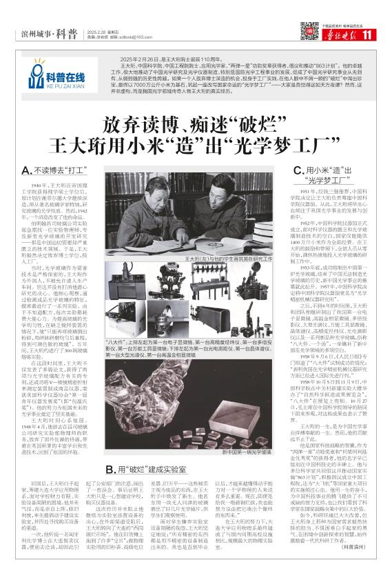 放弃读博、痴迷“破烂” 王大珩用小米“造”出“光学梦工厂”