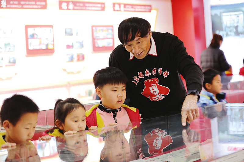 在阳信县,全国学雷锋标兵杨广和在个人工作室向小学生分享雷锋事迹,并结合自己学雷锋、助人为乐的故事,引导孩子们学习雷锋精神。