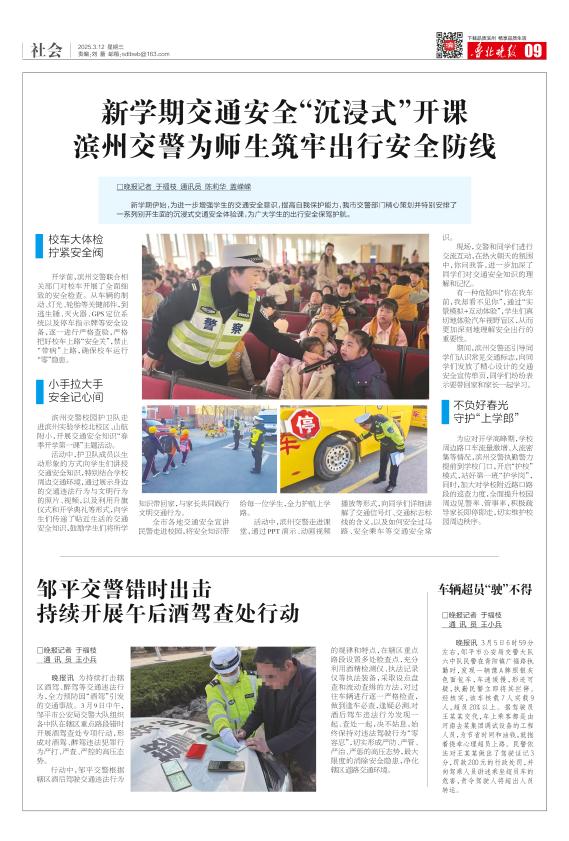 新学期交通安全“沉浸式”开课 滨州交警为师生筑牢出行安全防线