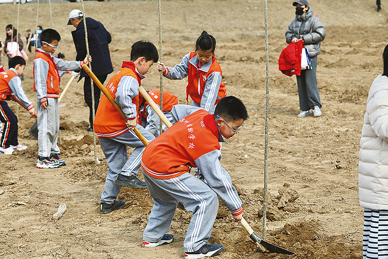 春风料峭的旷野上,同学们热火朝天、干劲十足,一锹锹土、一桶桶水,都化作对春天最真挚的祝福,种进了大地的怀抱。