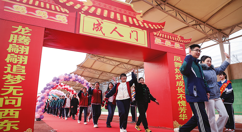 学生们步履坚定地走过“成人门”。 晚报记者 李 默 徐志强 张丹丹 赵 鑫