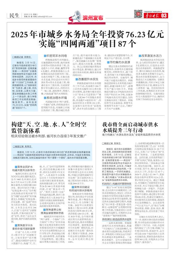 2025年市城乡水务局全年投资76.23亿元 实施“四网两通”项目87个