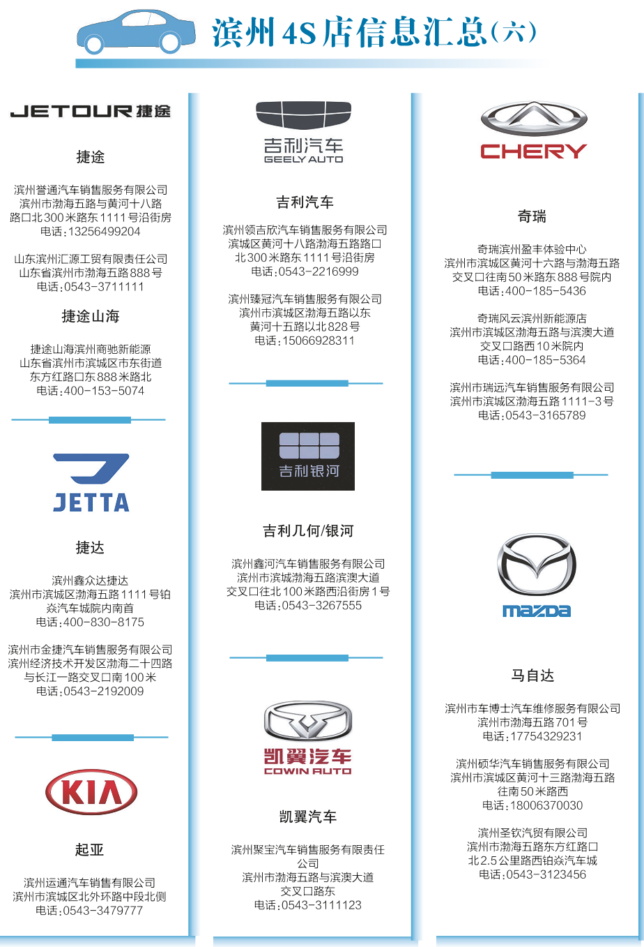 滨州4S店信息汇总(六)