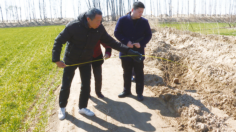 在滨城区杨柳雪镇顺和店村,记者见到了村民张国强。他告诉记者,灌溉渠清淤时,工作人员将挖出来的泥土存放到了沟渠东边的生产路上,清淤挖出来的泥土占了一米多宽,农用三轮还能通行,拖拉机通行的话,就只能从他家的麦田里轧过去。