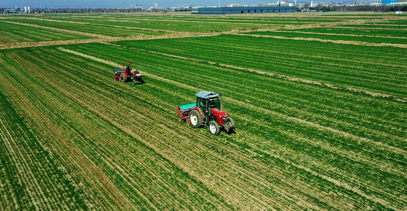 晚报无棣讯 3月29日,在无棣县棣丰街道荣超家庭农场,两台大型拖拉机正在田间为小麦进行精准施肥。种粮大户梅荣超告诉记者:“今年种植的3000亩小麦全部使用大型机械进行播肥,大约用时2天,这种施肥方式不但提高了施肥效率,还能保墒、提升30%肥料利用率。”