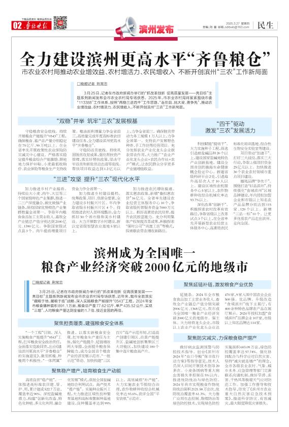 滨州成为全国唯一 粮食产业经济突破2000亿元的地级市