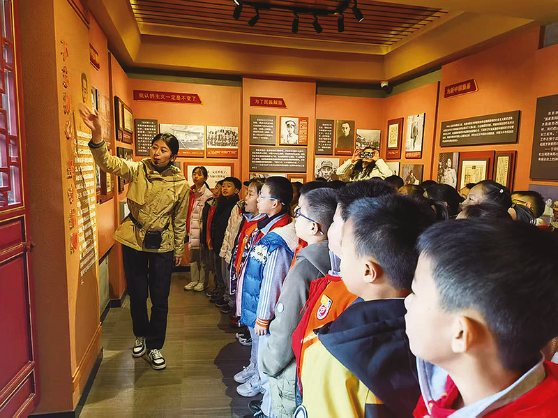 第二个展厅的主题是“热爱人民勤政为民、自我革命永远奋斗”。周恩来同志发扬彻底的自我革命精神,不断增强自我净化、自我革新、自我提高的能力,不断增强学习本领,自觉践行全心全意为人民服务的根本宗旨。孩子们听完讲解后若有所思,立志要好好学习,长大为祖国贡献自己的力量。