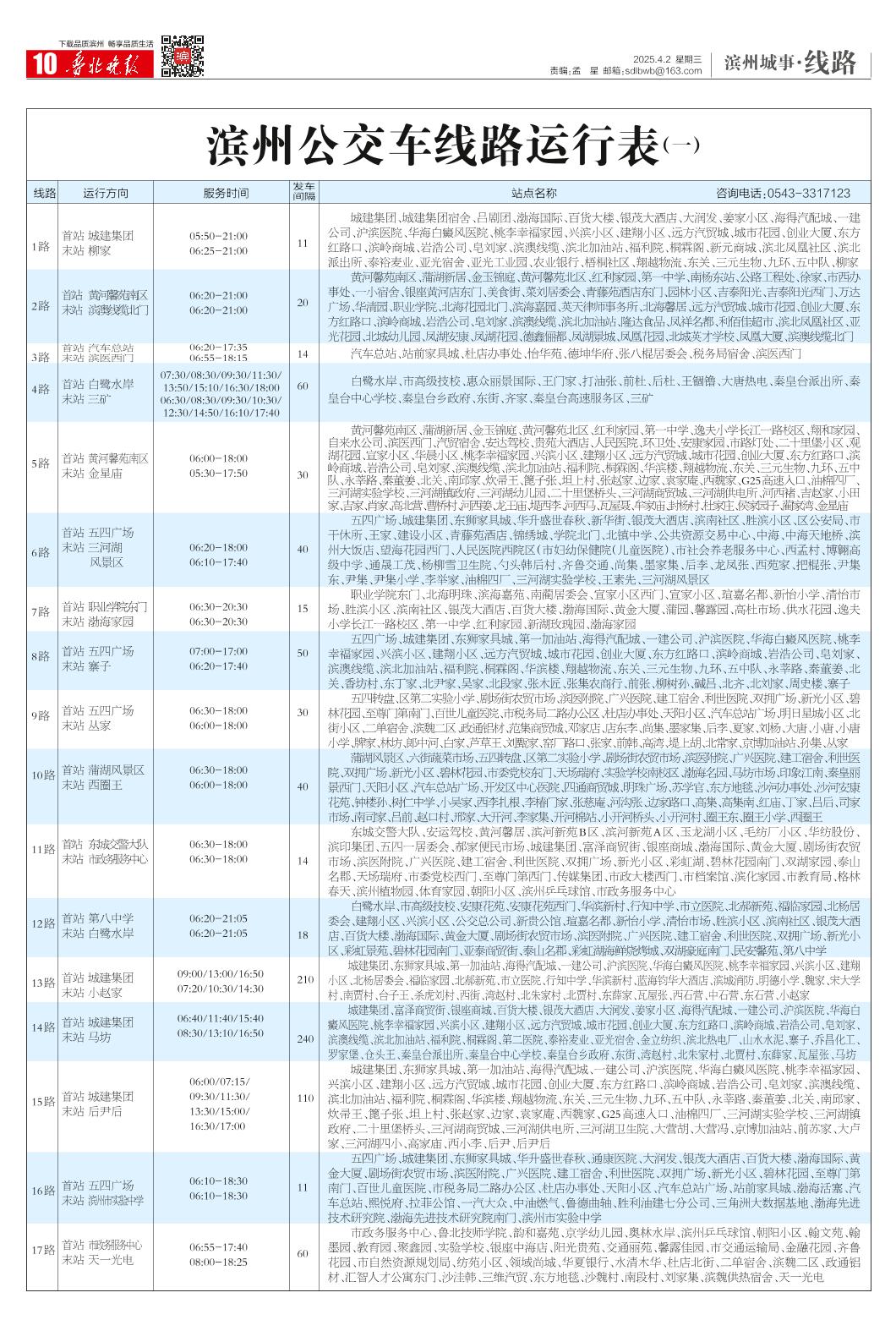 滨州公交车线路运行表(一)