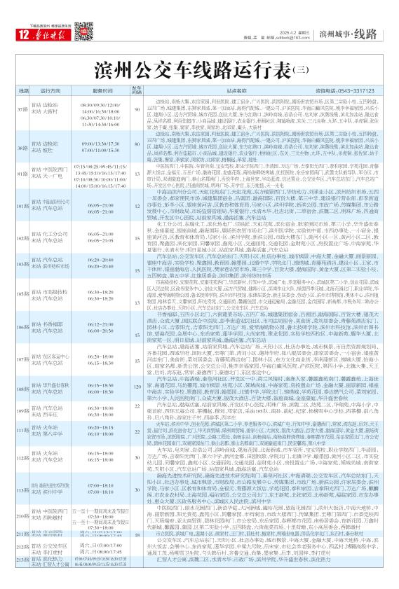 滨州公交车线路运行表(三)
