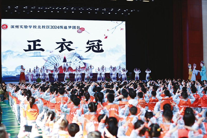 晚报讯 4月3日,滨州实验学校风雨操场内古韵悠扬,一场别开生面的执笔礼活动拉开帷幕。“童蒙启智追梦想执笔润德做栋梁”,在这一主题的引领下,一年级追梦团队的孩子们,在校领导、一年级全体师生以及家长代表的共同见证下,沉浸式体验了一场极具意义的传统文化盛宴,迈出了求学道路上的重要一步。