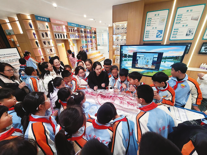 在生命科技馆,学生们通过人工韧带触摸体验、再生医学成果展示等互动项目,了解从细胞到人体的生命科学奥秘。“原来衣服面料与生命科学息息相关!”学生们在惊叹科技力量的同时,更深刻理解了“科技服务生活”的理念。