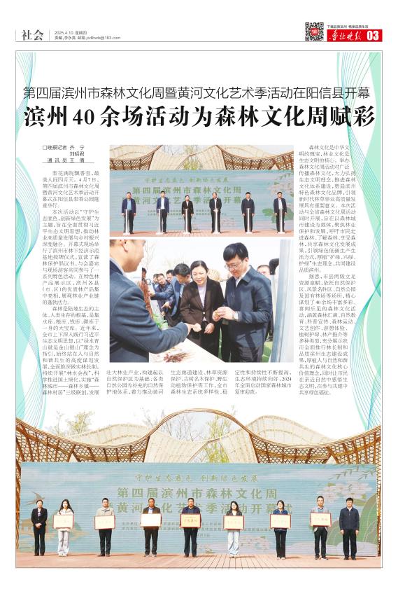 据悉,市县两级立足资源禀赋,依托自然保护区、风景名胜区、自然公园及国有林场等场所,精心谋划了40余场丰富多彩、喜闻乐见的森林文化活动,涵盖森林汇演、自然教育、科普宣传、森林运动、文艺创作、游憩体验、植树护绿、林产推介等多种类型,充分展示我市全面推行林长制和品质滨州生态建设成果,厚植人与自然和谐共生的森林文化核心价值理念,同时让市民在亲近自然中感悟生态文明,在参与共建中共享绿色福祉。