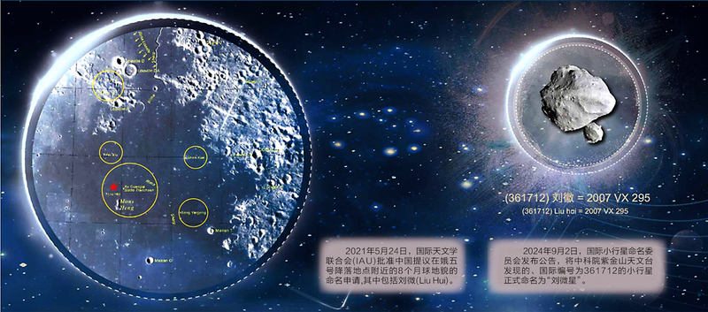 2021年5月,国际天文学联合会(IAU)批准中国在嫦娥五号降落地点附近月球地貌的命名,刘徽(liuhui)为八个地貌地名之一。