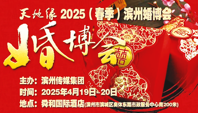 喜结良缘正当时!天地缘・2025(春季)滨州婚博会将于4月19—20日在滨州舜和国际酒店盛大启幕!本次婚博会由滨州传媒集团主办,倡导简约文明婚俗,传播婚姻新理念,为新人打造一站式婚庆采购平台,以高品质、高性价比的服务减轻备婚压力,引导新人树立正确婚恋观,助力新人轻松筹备完美婚礼。