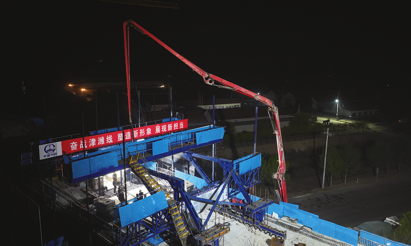 晚报讯 4月17日凌晨,由中铁六局承建的津潍高铁站前六标关键控制性工程——无棣特大桥跨工业八路(48+80+46m)连续梁顺利合龙,这是该标段本月继跨滨德高速连续梁顺利合龙后的第二个悬浇连续梁,标志着项目建设取得重要进展,为后续架梁和铺轨施工创造了有利条件。