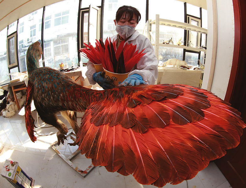 在滨州生产的赫氏近鸟龙复原模型作为国礼