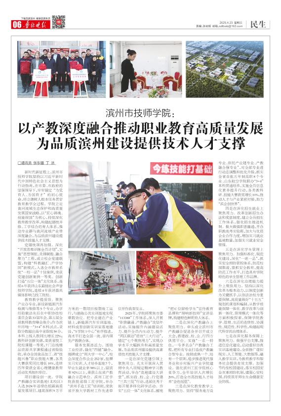 以产教深度融合推动职业教育高质量发展 为品质滨州建设提供技术人才支撑