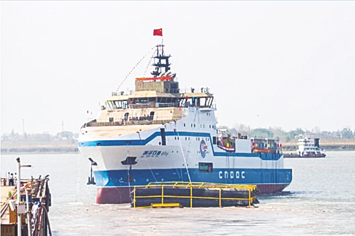 近日,记者从中国海油天津分公司获悉,我国首艘集成式大型压裂船——“海洋石油696”完成下水仪式,进入下水调试阶段。