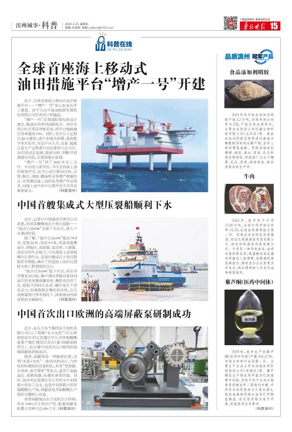 全球首座海上移动式 油田措施平台“增产一号”开建