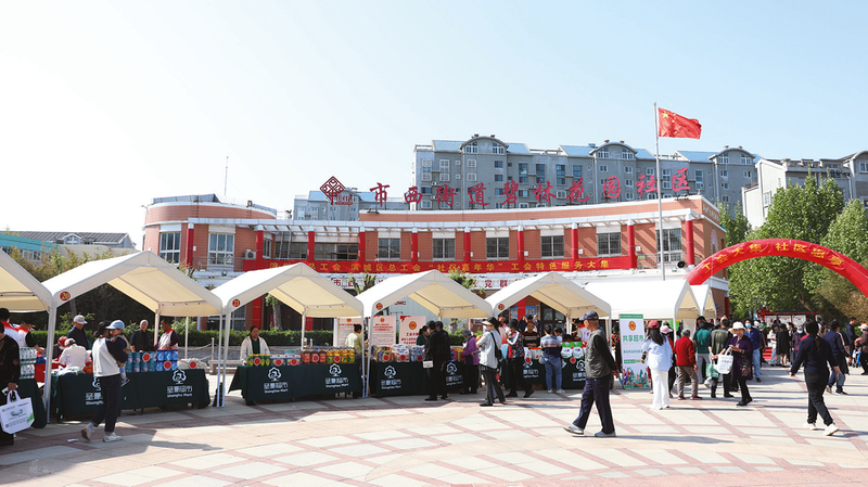 活动现场设置工创优品市集、社区共享超市、家门口健康驿站、家庭服务补给站四大区域,从生活物资到文化体验,从健康关怀到政策帮扶,全方位覆盖职工群众生活所需。