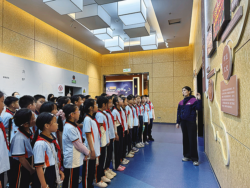 “滨州城与水共生三千年,从‘鱼盐之利’到‘黄金水道’......”在讲解员娓娓道来中,学生们透过影像观看到珍贵的历史文物和景象,感知这座依水而兴城市的发展脉络。在“非遗百工坊”展区,布老虎、胡集书会、吕剧等非遗文化一一呈现。栩栩如生的布老虎展示着民间手工艺的精巧;胡集书会的场景复原,仿佛将孩子们带回热闹非凡的传统书场;吕剧经典片段的播放,让大家感受到地方戏曲的独特魅力。在顶层观景台,当孩子们拿起望远镜眺望远方,真实的黄河如金色丝带般蜿蜒在广袤大地上,课本中“母亲河”的形象变得鲜活可触。