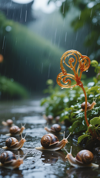 雨后,花园里来了许多不速之客—— 蜗牛。它们探出小脑袋望着我,模样可爱极了,我便带了一只回家。