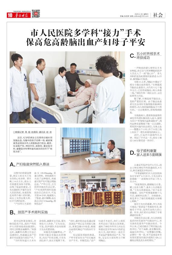 市人民医院多学科“接力”手术 保高危高龄脑出血产妇母子平安