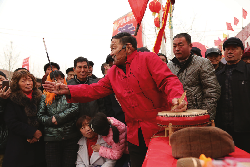 2016年胡集书会,鲁北大鼓艺人朱延安在表演。(资料图)