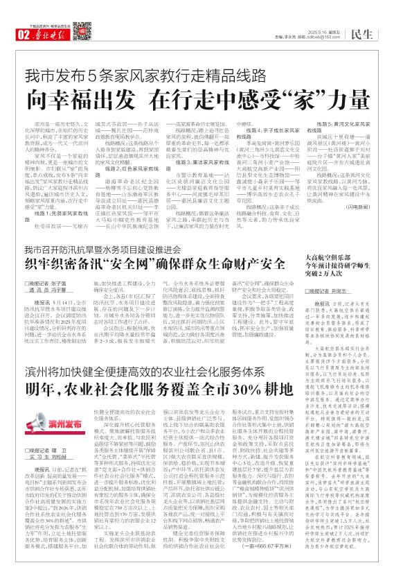 家风不仅是一个家庭的精神内核,更是一座城市的文明缩影。市妇联从“家”的角度,串点成线,发布5条“向幸福出发”家风家教行走精品线路,倡议广大家庭探寻滨州古风遗韵,遍访城市历史人文,领略家风厚重内涵,在行走中感受“家”力量。