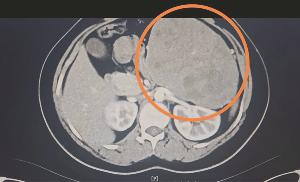 经术前多学科会诊、精准的术前规划、精细解剖及止血,术中探查见腹腔肿瘤体积巨大,侵犯脾门、脾血管,伴广泛出血坏死及囊变,病理确诊为胰腺实性假乳头状肿瘤(低度恶性)。成功为患者实施胰体尾肿瘤+脾脏切除术,完整切除肿瘤并避免并发症,术后康复出院。
