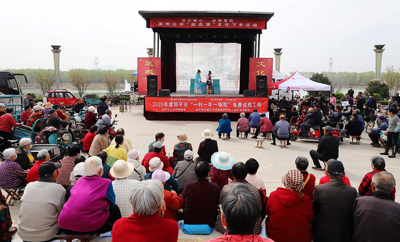 近日,邹平市明集镇兰芝里大集在铿锵的锣鼓声中热闹开市。舞台中央,戏曲演员一个亮相,水袖翻飞间,经典剧目《穆桂英挂帅》选段响彻集市;不远处,省级非物质文化遗产苗家粗布传承人苗传武正脚踏织机,随着梭子来回穿梭,引来不少村民驻足观看。“以前赶集就是买卖东西,现在能看戏、学手艺,大集变得更有人气了!”村民张大姐笑着说。