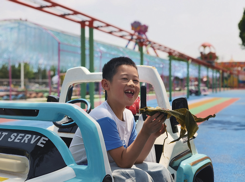 摩天轮下,滨州广播电视台的主持人们化身“欢乐引路人”,与和现场的小朋友们亲密互动,带孩子们了解端午节的来历、文化和习俗。