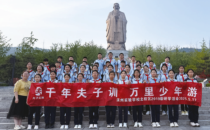 晚报滨州讯 近日,滨州实验学校2019级7班恒升中队组织了以“千年夫子训,万里少年游”为主题的曲阜研学活动。