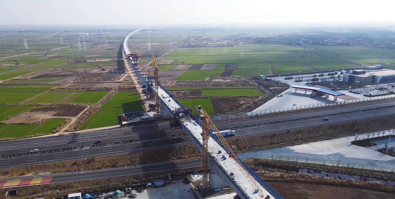 “轨道上的滨州”加速形成,互联互通的公路网也越织越密。在位于阳信县的庆章高速工程施工一标段,德大铁路分离立交下部以及上部结构正在紧张有序施工,作为项目控制性关键节点,德大铁路分离立交具有墩柱高度高、施工环境复杂的特点,项目部高度重视,全力以赴保障施工工作正常进行。庆章高速一标段项目生产经理管西伟对记者说:“我们正全力抢抓施工黄金期,通过科学组织采取24小时连续作业模式,目前保持投入各类机械设备300余台套,现场800余名作业人员同时施工。目前下部结构已完成95%,梁板架设以及上部结构正全面展开。全线路基工程已完成填方500万立方米,占项目总量的67%,桥梁工程的下部结构已基本完成,各项计划正顺利实施。”